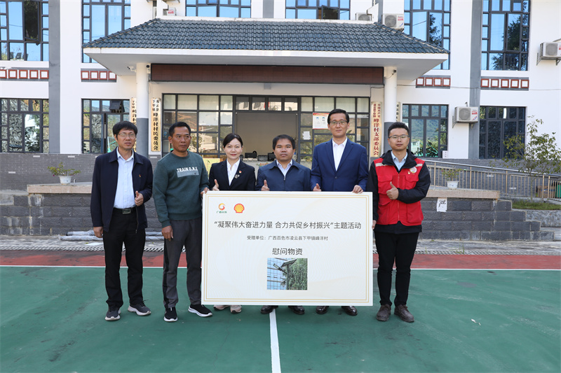 ▲機(jī)械院下屬企業(yè)柳州格瑞米公司組織5家愛(ài)心企業(yè)捐贈(zèng)價(jià)值2.8萬(wàn)元的基礎(chǔ)設(shè)施建設(shè)物資,殼牌公司、商貿(mào)公司向峰洋村捐贈(zèng)太陽(yáng)能路燈