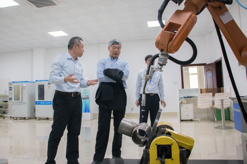 王吉才院長向李培根院士詳細介紹了我院的情況,重點介紹了近年來我院轉型升級后在智能制造方面的技術應用。李院士在細心傾聽我院領導的介紹后,對我院在促進廣西智能制造創新發展中的作用表示充分肯定,并針對我院的科研、生產等工作高屋建瓴地給出了許多建設性的意見。
