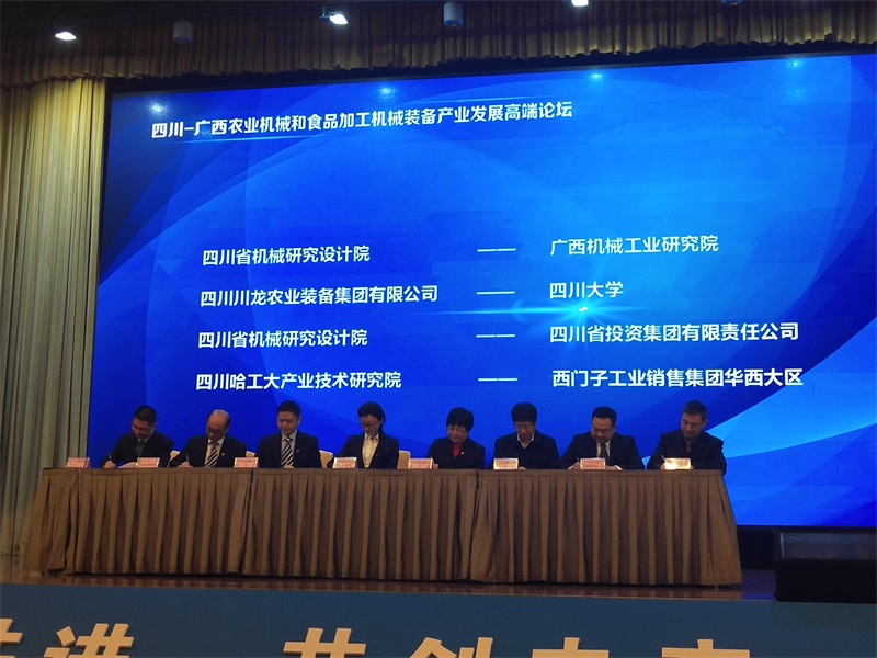 會上,我院加入四川-廣西農業機械和食品加工機械裝備產業發展聯盟并與四川省機械研究設計院簽署戰略合作協議,達成長期戰略合作伙伴關系。