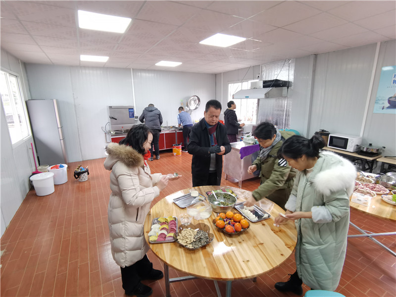 “后勤保障做得怎么樣?”、“春節期間員工餐廳做什么飯?”在平南路項目部,王吉才熱情地向大家拜年,送上新春祝福,并詳細詢問春節期間保障工作,叮囑相關負責人員要做好后勤保障,讓大家在春節期間吃得香、住的暖。當了解到食堂正在包餃子時,王吉才饒有興致來到食堂同大家一起搟皮、拌餡、包餃子。慰問現場氣氛熱烈、喜氣洋洋,充滿了歡樂祥和的節日氣氛。王吉才勉勵大家繼續發揚奮斗精神,保持良好的工作狀態,堅守崗位,盡職盡責,嚴守值班紀律,認真做好值班工作,保證信息暢通,確保春節期間項目部各項工作正常運轉。
