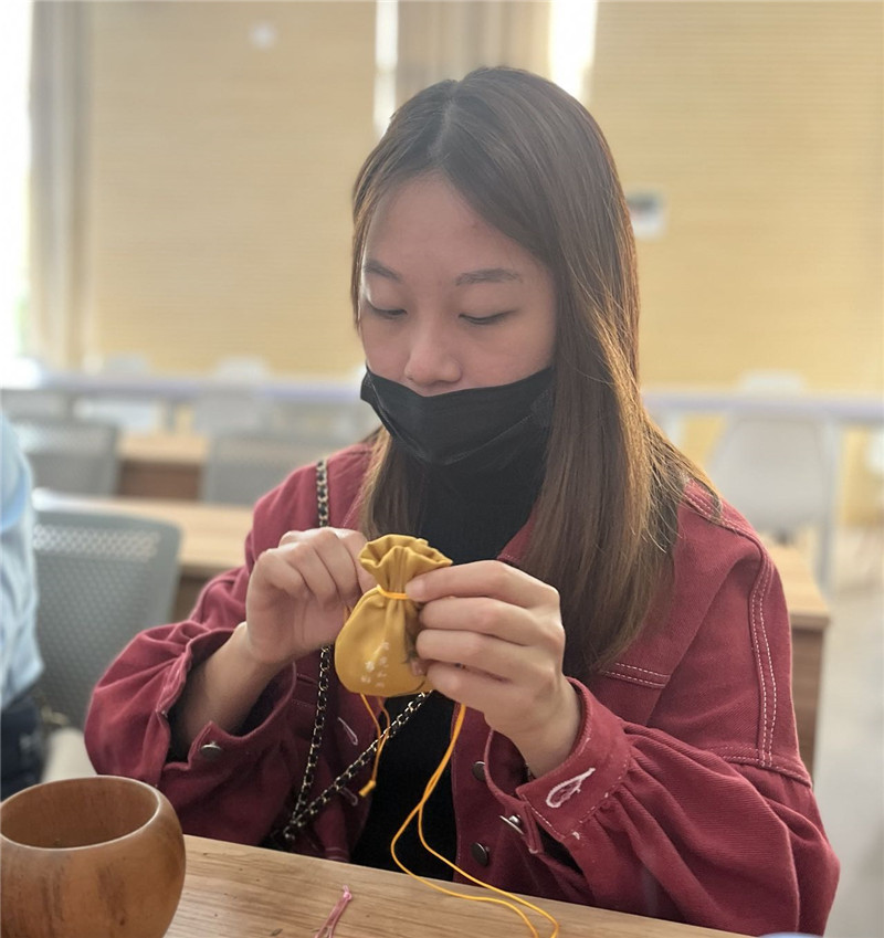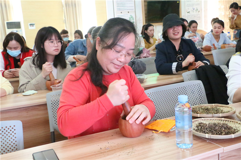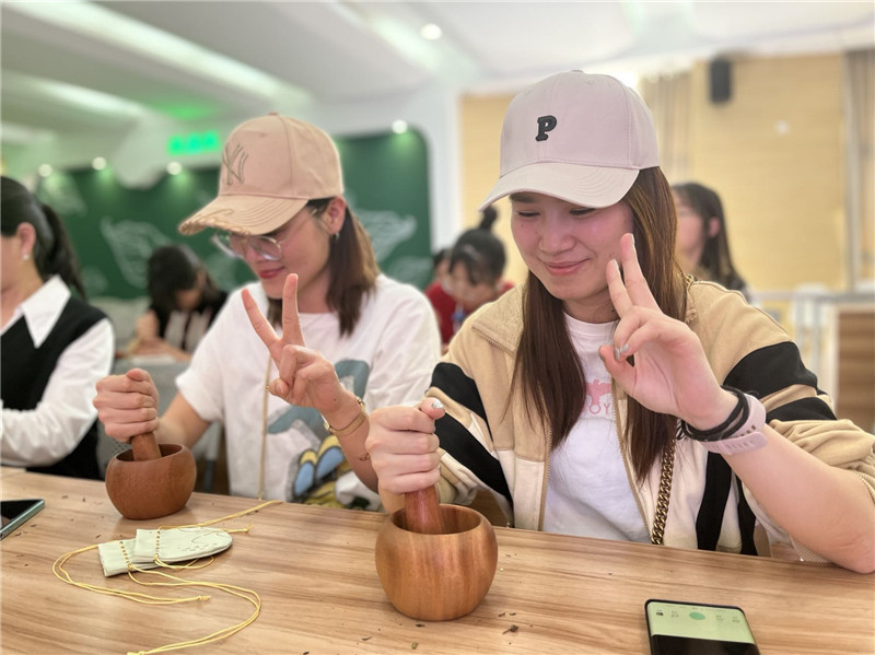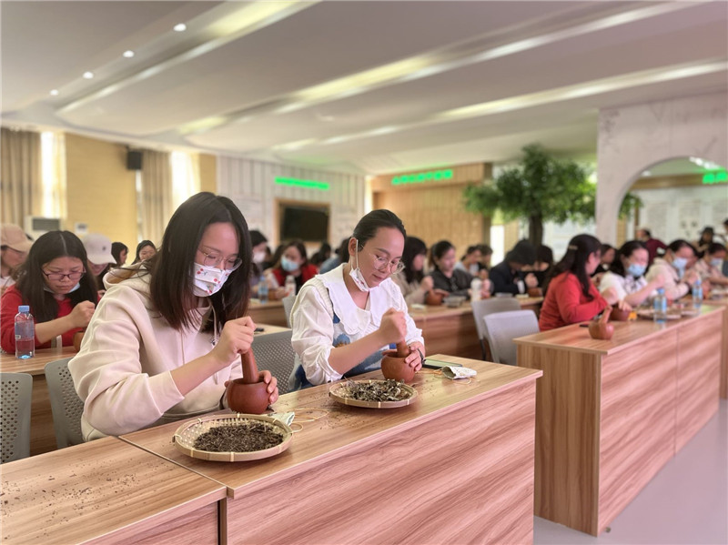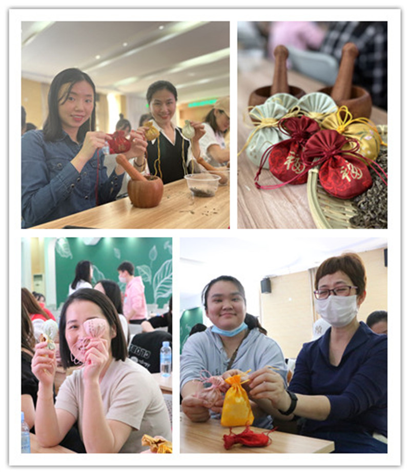 “吳茱萸芳香去濕、疏肝理氣,薄荷可以提神醒腦,大家隨身佩戴,可以在人體周圍形成高濃度的小環境......”在指導老師的解說中,女職工們一起認識了艾葉、薄荷、紫蘇、吳茱萸、花椒等草藥,以及每種草藥的獨特功效,并通過動手實踐,制香、聞香,更生動地認識藥用植物與養生知識、傳統文化的關聯。