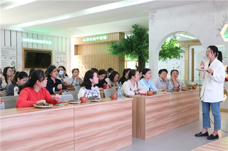 植物園現存藥用植物8900多種,是名符其實的“藥用植物王國”,三月的植物園內草木葳蕤,為麗人踏青提供好去處。跟隨講解員的腳步,一行人穿過陰生藥物區、藤本植物區、植物隧道和草部等區域,中醫文化、植物園景觀特點在講解員的動人解說中緩緩鋪展開來,種類繁多的植物的生長習性、故事傳說、藥理藥效,讓大家沉浸其中,時而發聲詢問,時而賞花拍照,興趣盎然,受益良多。女神們還品嘗了植物園的特色藥茶--絞股藍茶,了解其養生作用及沖泡方法。