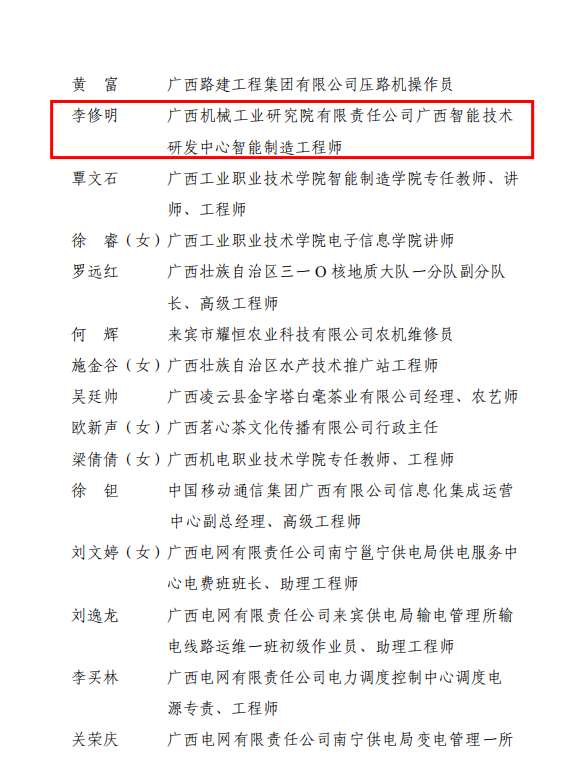 習近平總書記指出:“創新的事業呼喚創新的人才。”為推動產業工人不斷提高技術水平,煥發創新創造活力,近日,自治區總工會公布了廣西五一勞動獎章和廣西工人先鋒號表彰名單,機械院梅開二度,時隔一年再次上榜,李修明同志獲授“廣西五一勞動獎章”。